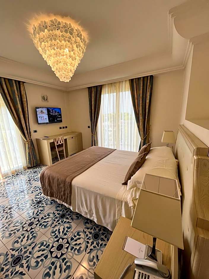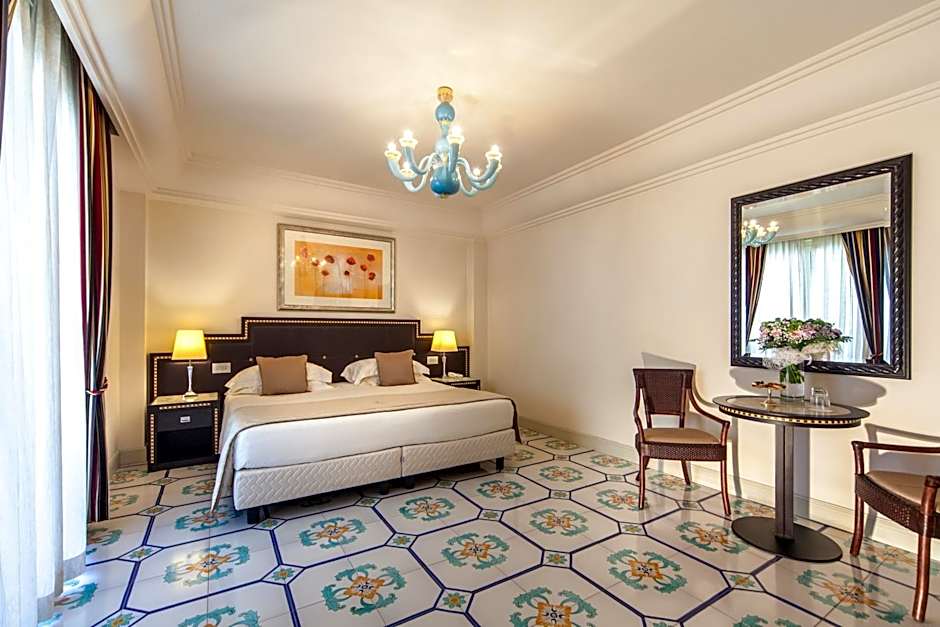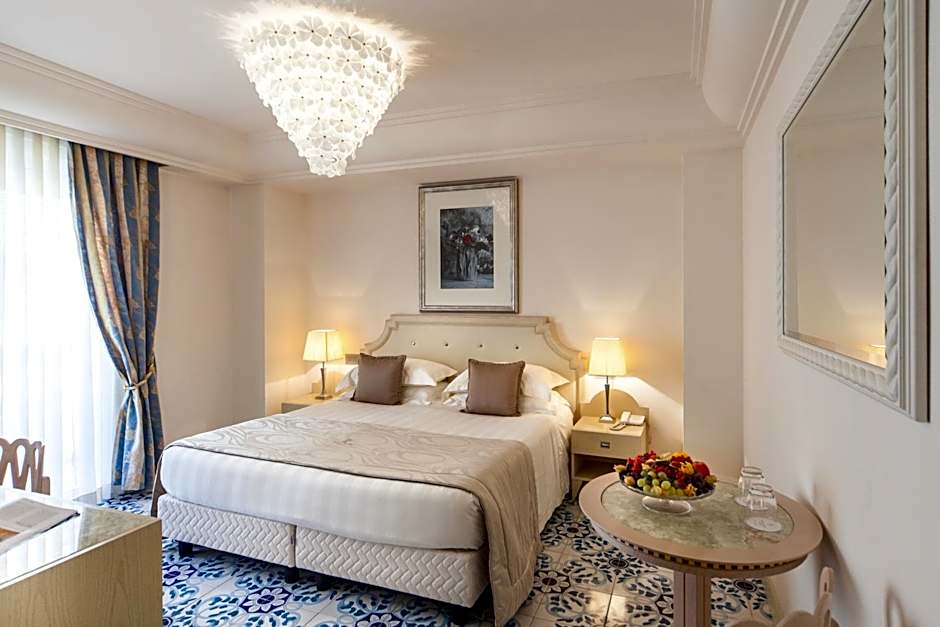 Large, elegant room with extra-large bed and sea-view balcony.
